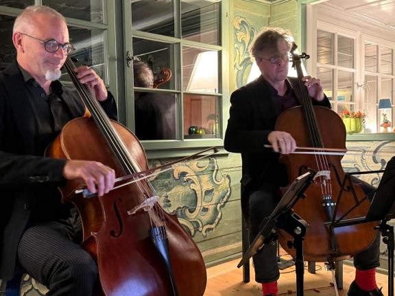Sie waren kleine Toggenburger Buben, als sie sich Ende der Siebzigerjahre entschieden, Cello zu lernen. Der Beschluss schien unter einem guten Stern gefasst worden zu sein, denn die beiden spielen heute noch Cello. Vor 42 Jahren gingen die gemeinsamen Musik-Abenteuer zu Ende. Aber der gute Stern ging nicht verloren. Beide machten musikalische Erkundungen in verschiedensten Genres: In Klassischer Musik von Barockem bis Zeitgenössischem, von Volksmusik, über Jazz bis zu experimenteller Improvisation. Und nun ist der Stern wieder aufgegangen! Sie spielen wieder zusammen. Dabei erinnern sie sich der speziellen Toggenburger Lieder, die damals jedes Kind entlang der Thur lernte. Die einfachen Lieder erklingen nun auf zwei Celli, in Arrangements, in denen all die Einflüsse der vergangenen Jahre zu hören sind. So klingt Toggenburger Volkskulturgut mal nach Neuer Musik, mal wieder jazzig plätschernd oder in meditativem Klanggewand. Und weil nicht alle Lieder allen bekannt sind, wird zwischendurch auch mal eine Strophe gesungen oder mit dem Publikum eingeübt. Zwischen diese Neu-Toggenburger Kleinode setzen sie Stücke aus der Zeit als das Cello frisch erfunden war. Die barocken Celloduos von Domenico Gabrielli und Jean Barrière verleihen den Konzerten einen dramaturgischen Bogen, der Virtuosität und Schönheit, Altes und Neues spielerisch und mit Witz verbindet. Denn was sich Stefan Baumann und Bo Wiget in den 42 Jahren nicht haben nehmen lassen sind eine unverhohlene, fast bübische Spielfreude und eine Lust am Erweitern des Celloklangs gepaart mit einer Liebe für einfache Melodien.